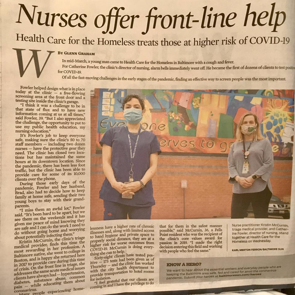 At the start of this month, The Baltimore Sun honored the nurses and nurse practitioners of Health Care for the Homeless as Heroes of the Week. Below is the nomination we submitted and a link to read The Baltimore Sun article.