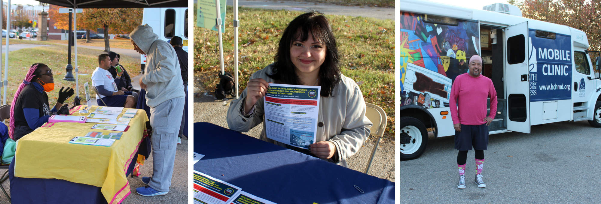 Community partners Baltimore Harm Reduction Coalition and Renters United Maryland joined our Mobile Clinic in sharing tangible ways for us all to advocate for change beyond race day.